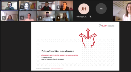 Im Zuge eines interessanten 5-stündigen Workshops gemeinsam mit Herr Dr. Buder vom Nürnberg Institut für Marktentscheidungen e.V. konnten die Studierenden am 26.11. ihre bisher erarbeiteten Zukunftsszenarien mit neuen Ideen und Herangehensweisen anreichen. Außerdem haben sich die 16 Studierenden mit branchenspezifischen toxischen Annahmen auseinandergesetzt und diese für ihre Szenarien kritisch hinterfragt. Der Workshop fand im Rahmen des Seminars „Strategische Vorausschau in Theorie und Praxis“ statt.